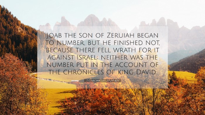 Joab the son of Zeruiah began to number, but he finished not, because there fell wrath for it against Israel; neither was the number put in the account of the chronicles of king David.