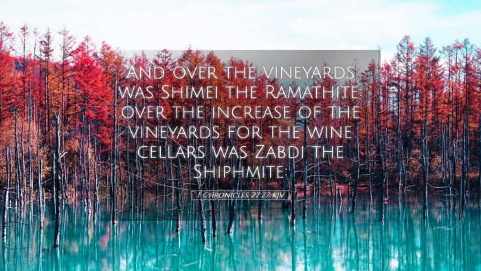 And over the vineyards was Shimei the Ramathite: over the increase of the vineyards for the wine cellars was Zabdi the Shiphmite: