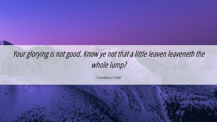 Your glorying is not good. Know ye not that a little leaven leaveneth the whole lump?