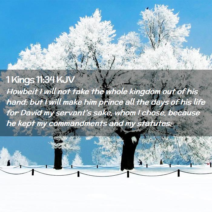 Howbeit I will not take the whole kingdom out of his hand: but I will make him prince all the days of his life for David my servant's sake, whom I chose, because he kept my commandments and my statutes: