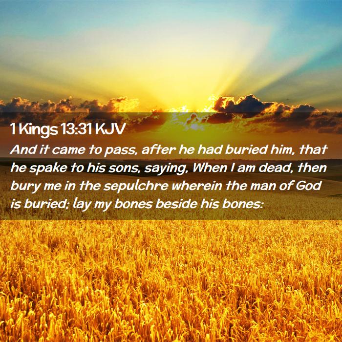 And it came to pass, after he had buried him, that he spake to his sons, saying, When I am dead, then bury me in the sepulchre wherein the man of God is buried; lay my bones beside his bones: