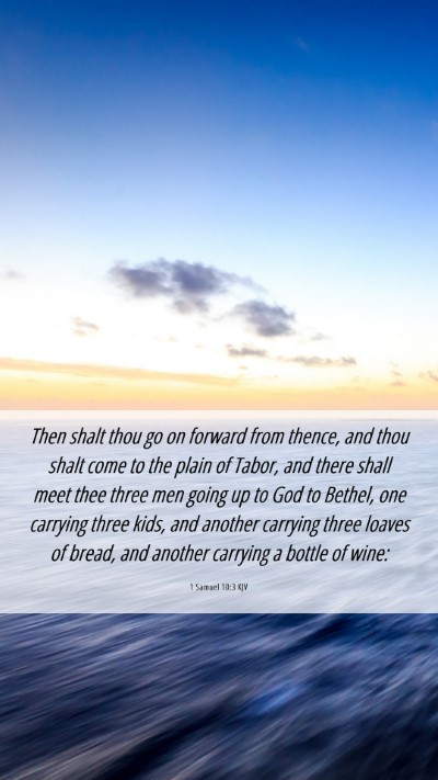 Then shalt thou go on forward from thence, and thou shalt come to the plain of Tabor, and there shall meet thee three men going up to God to Bethel, one carrying three kids, and another carrying three loaves of bread, and another carrying a bottle of wine: