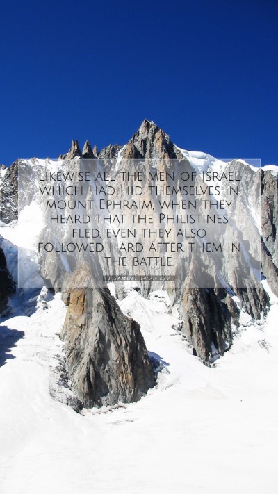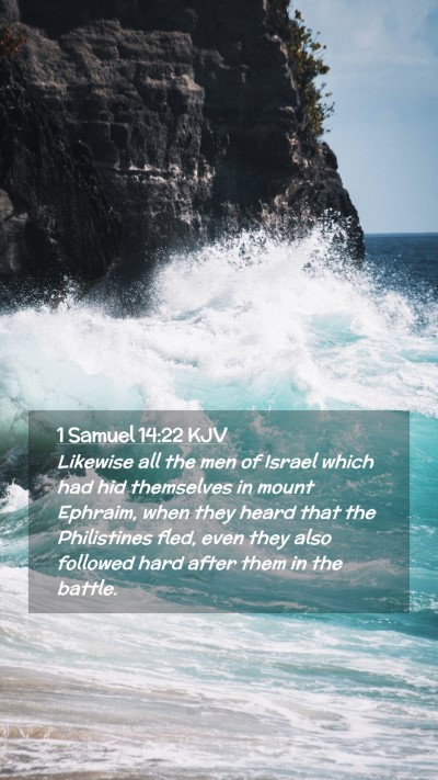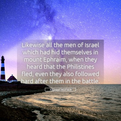Likewise all the men of Israel which had hid themselves in mount Ephraim, when they heard that the Philistines fled, even they also followed hard after them in the battle.