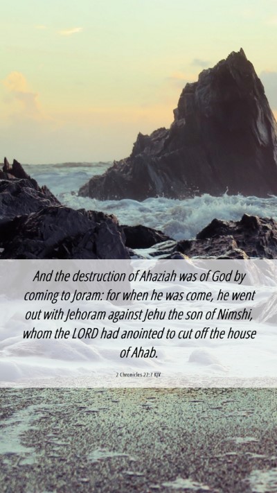 And the destruction of Ahaziah was of God by coming to Joram: for when he was come, he went out with Jehoram against Jehu the son of Nimshi, whom the LORD had anointed to cut off the house of Ahab.