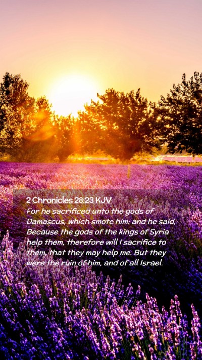 For he sacrificed unto the gods of Damascus, which smote him: and he said, Because the gods of the kings of Syria help them, therefore will I sacrifice to them, that they may help me. But they were the ruin of him, and of all Israel.