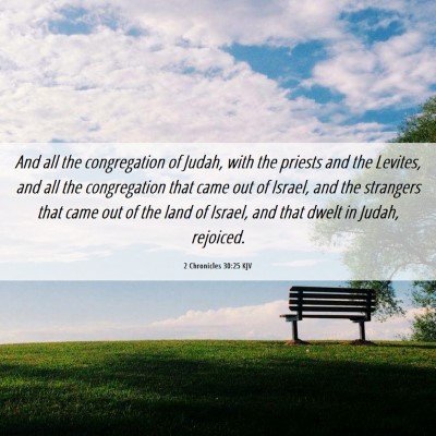 And all the congregation of Judah, with the priests and the Levites, and all the congregation that came out of Israel, and the strangers that came out of the land of Israel, and that dwelt in Judah, rejoiced.