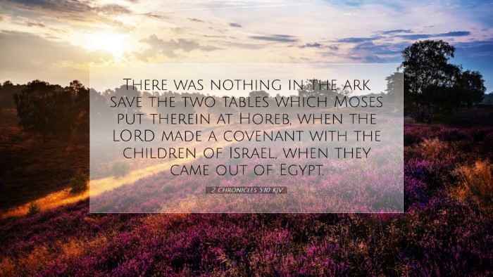 There was nothing in the ark save the two tables which Moses put therein at Horeb, when the LORD made a covenant with the children of Israel, when they came out of Egypt.