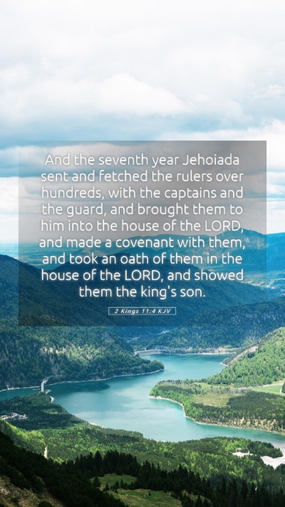 And the seventh year Jehoiada sent and fetched the rulers over hundreds, with the captains and the guard, and brought them to him into the house of the LORD, and made a covenant with them, and took an oath of them in the house of the LORD, and showed them the king's son.