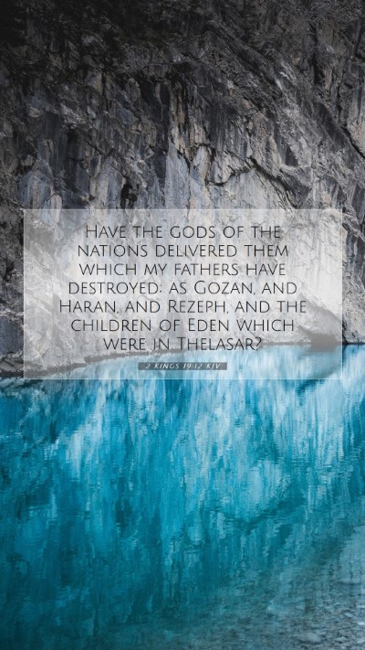 Have the gods of the nations delivered them which my fathers have destroyed; as Gozan, and Haran, and Rezeph, and the children of Eden which were in Thelasar?