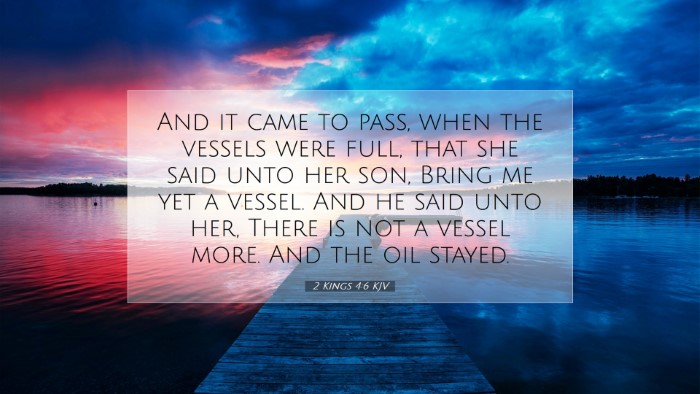 And it came to pass, when the vessels were full, that she said unto her son, Bring me yet a vessel. And he said unto her, There is not a vessel more. And the oil stayed.