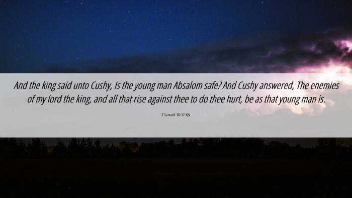 And the king said unto Cushy, Is the young man Absalom safe? And Cushy answered, The enemies of my lord the king, and all that rise against thee to do thee hurt, be as that young man is.