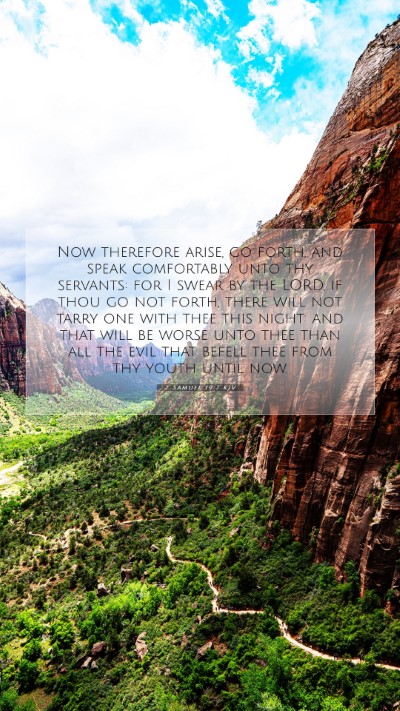 Now therefore arise, go forth, and speak comfortably unto thy servants: for I swear by the LORD, if thou go not forth, there will not tarry one with thee this night: and that will be worse unto thee than all the evil that befell thee from thy youth until now.