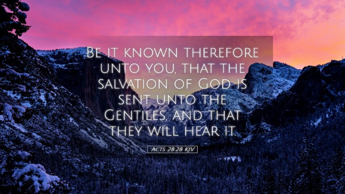 Be it known therefore unto you, that the salvation of God is sent unto the Gentiles, and that they will hear it.