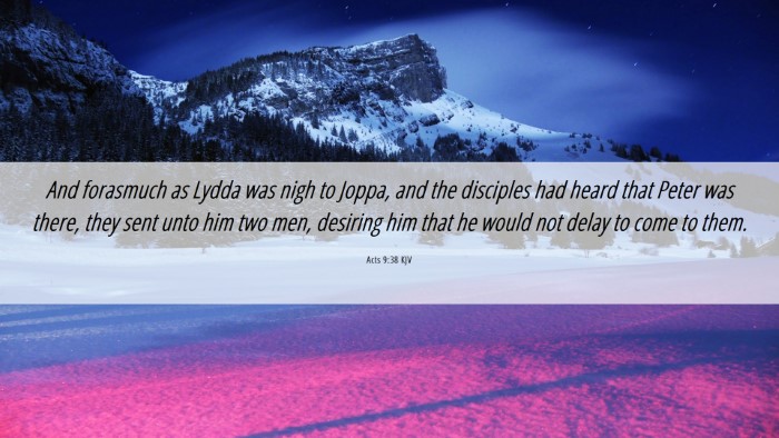 And forasmuch as Lydda was nigh to Joppa, and the disciples had heard that Peter was there, they sent unto him two men, desiring him that he would not delay to come to them.