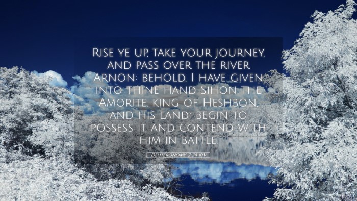 Rise ye up, take your journey, and pass over the river Arnon: behold, I have given into thine hand Sihon the Amorite, king of Heshbon, and his land: begin to possess it, and contend with him in battle.