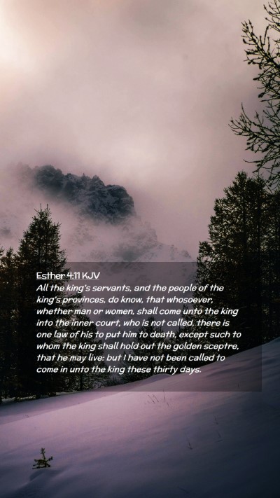 All the king's servants, and the people of the king's provinces, do know, that whosoever, whether man or women, shall come unto the king into the inner court, who is not called, there is one law of his to put him to death, except such to whom the king shall hold out the golden sceptre, that he may live: but I have not been called to come in unto the king these thirty days.