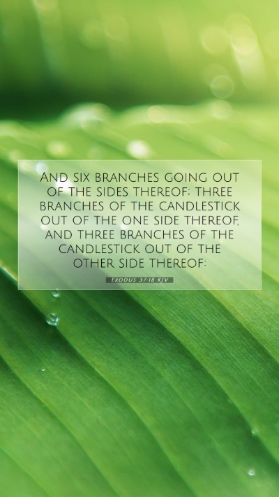 And six branches going out of the sides thereof; three branches of the candlestick out of the one side thereof, and three branches of the candlestick out of the other side thereof: