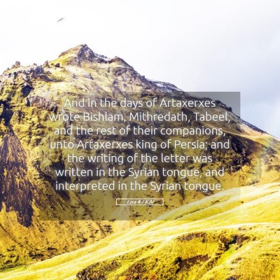 And in the days of Artaxerxes wrote Bishlam, Mithredath, Tabeel, and the rest of their companions, unto Artaxerxes king of Persia; and the writing of the letter was written in the Syrian tongue, and interpreted in the Syrian tongue.