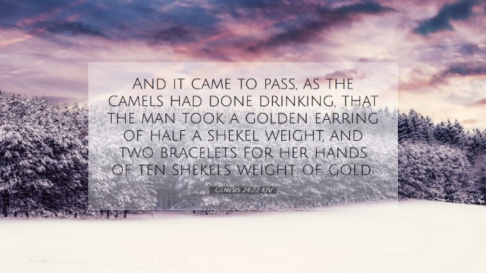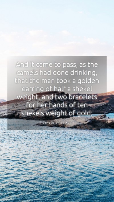 And it came to pass, as the camels had done drinking, that the man took a golden earring of half a shekel weight, and two bracelets for her hands of ten shekels weight of gold;