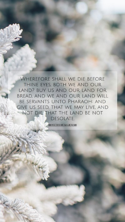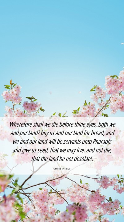 Wherefore shall we die before thine eyes, both we and our land? buy us and our land for bread, and we and our land will be servants unto Pharaoh: and give us seed, that we may live, and not die, that the land be not desolate.
