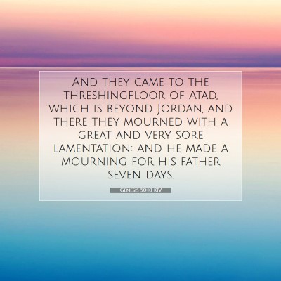 And they came to the threshingfloor of Atad, which is beyond Jordan, and there they mourned with a great and very sore lamentation: and he made a mourning for his father seven days.