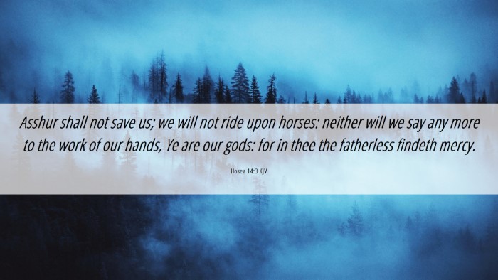 Asshur shall not save us; we will not ride upon horses: neither will we say any more to the work of our hands, Ye are our gods: for in thee the fatherless findeth mercy.