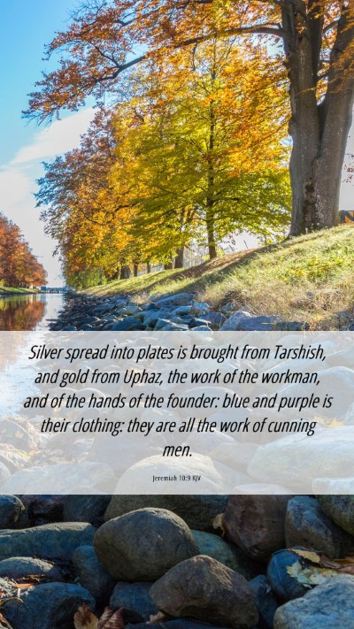 Silver spread into plates is brought from Tarshish, and gold from Uphaz, the work of the workman, and of the hands of the founder: blue and purple is their clothing: they are all the work of cunning men.