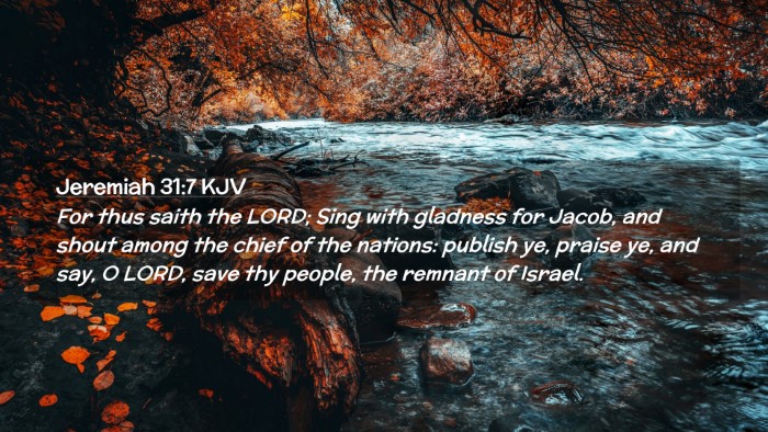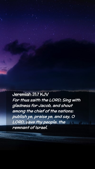 For thus saith the LORD; Sing with gladness for Jacob, and shout among the chief of the nations: publish ye, praise ye, and say, O LORD, save thy people, the remnant of Israel.
