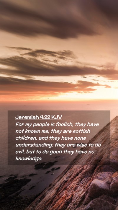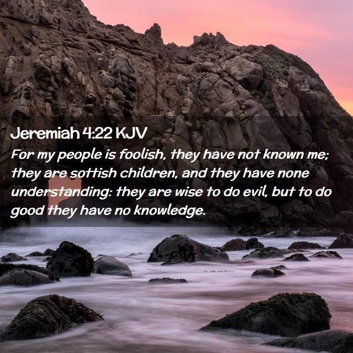 For my people is foolish, they have not known me; they are sottish children, and they have none understanding: they are wise to do evil, but to do good they have no knowledge.