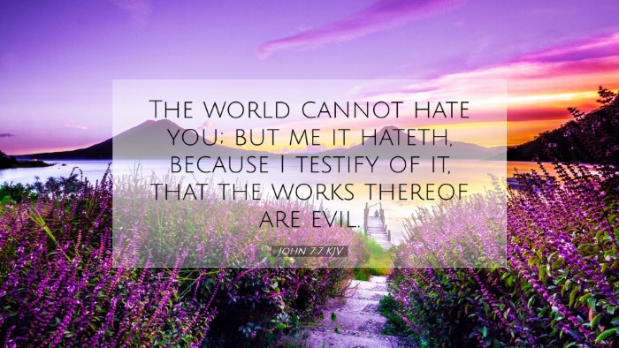 The world cannot hate you; but me it hateth, because I testify of it, that the works thereof are evil.