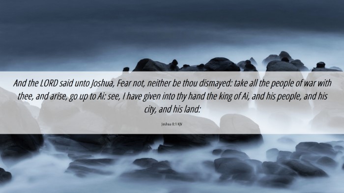 And the LORD said unto Joshua, Fear not, neither be thou dismayed: take all the people of war with thee, and arise, go up to Ai: see, I have given into thy hand the king of Ai, and his people, and his city, and his land: