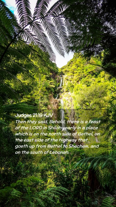 Then they said, Behold, there is a feast of the LORD in Shiloh yearly in a place which is on the north side of Bethel, on the east side of the highway that goeth up from Bethel to Shechem, and on the south of Lebonah.