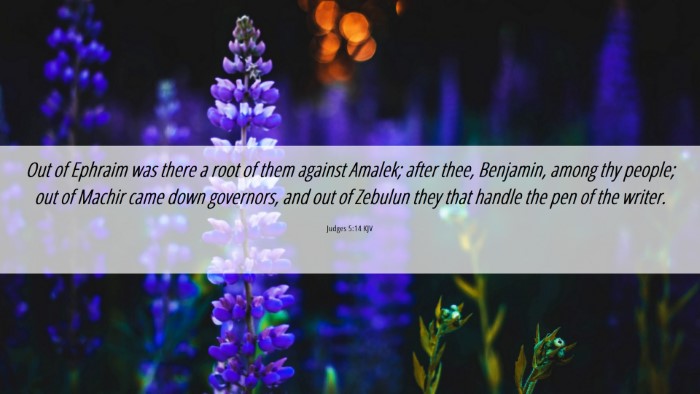 Out of Ephraim was there a root of them against Amalek; after thee, Benjamin, among thy people; out of Machir came down governors, and out of Zebulun they that handle the pen of the writer.