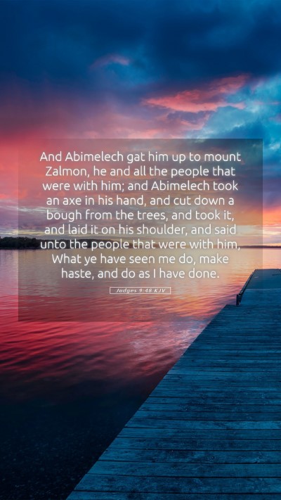 And Abimelech gat him up to mount Zalmon, he and all the people that were with him; and Abimelech took an axe in his hand, and cut down a bough from the trees, and took it, and laid it on his shoulder, and said unto the people that were with him, What ye have seen me do, make haste, and do as I have done.