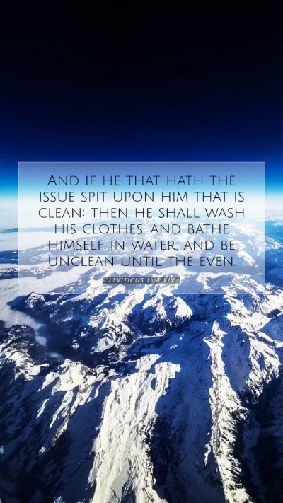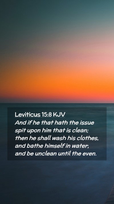 And if he that hath the issue spit upon him that is clean; then he shall wash his clothes, and bathe himself in water, and be unclean until the even.
