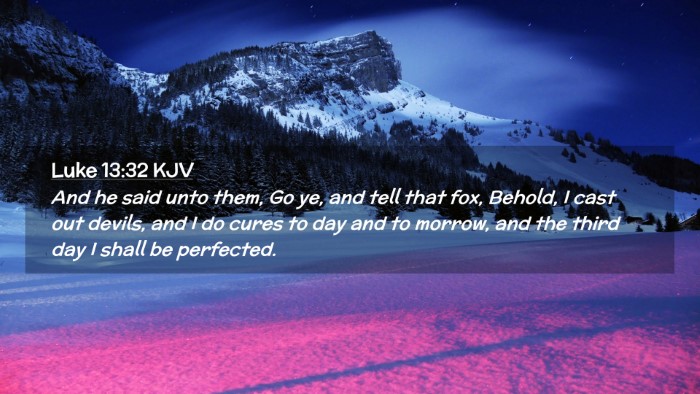 And he said unto them, Go ye, and tell that fox, Behold, I cast out devils, and I do cures to day and to morrow, and the third day I shall be perfected.