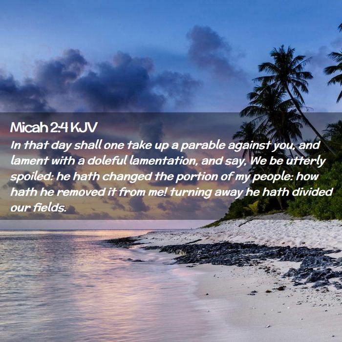 In that day shall one take up a parable against you, and lament with a doleful lamentation, and say, We be utterly spoiled: he hath changed the portion of my people: how hath he removed it from me! turning away he hath divided our fields.