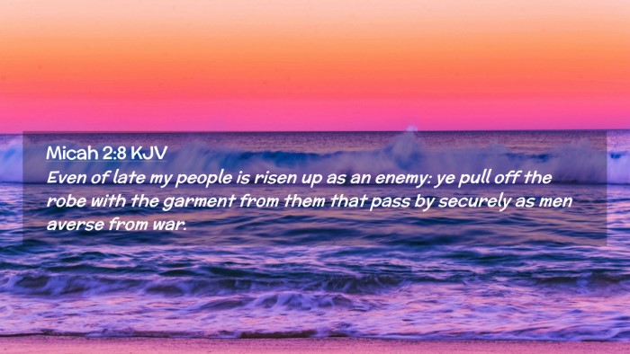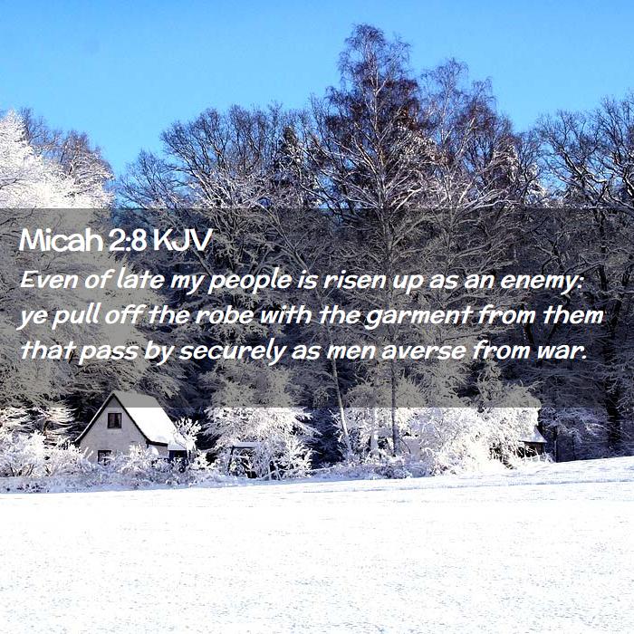 Even of late my people is risen up as an enemy: ye pull off the robe with the garment from them that pass by securely as men averse from war.