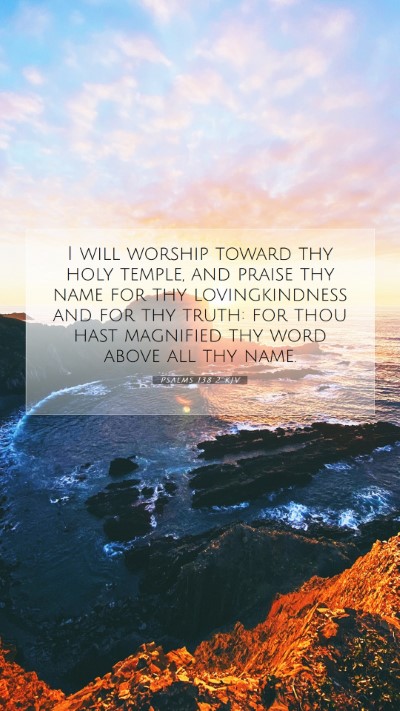 I will worship toward thy holy temple, and praise thy name for thy lovingkindness and for thy truth: for thou hast magnified thy word above all thy name.