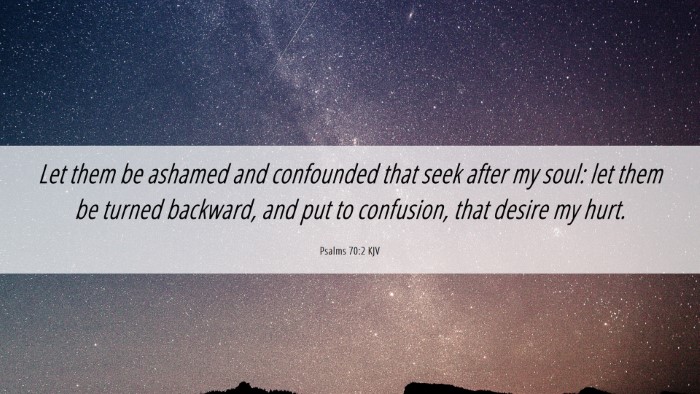 Let them be ashamed and confounded that seek after my soul: let them be turned backward, and put to confusion, that desire my hurt.