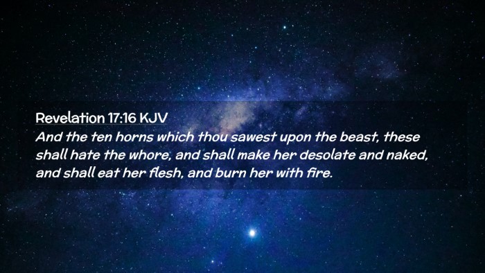 And the ten horns which thou sawest upon the beast, these shall hate the whore, and shall make her desolate and naked, and shall eat her flesh, and burn her with fire.
